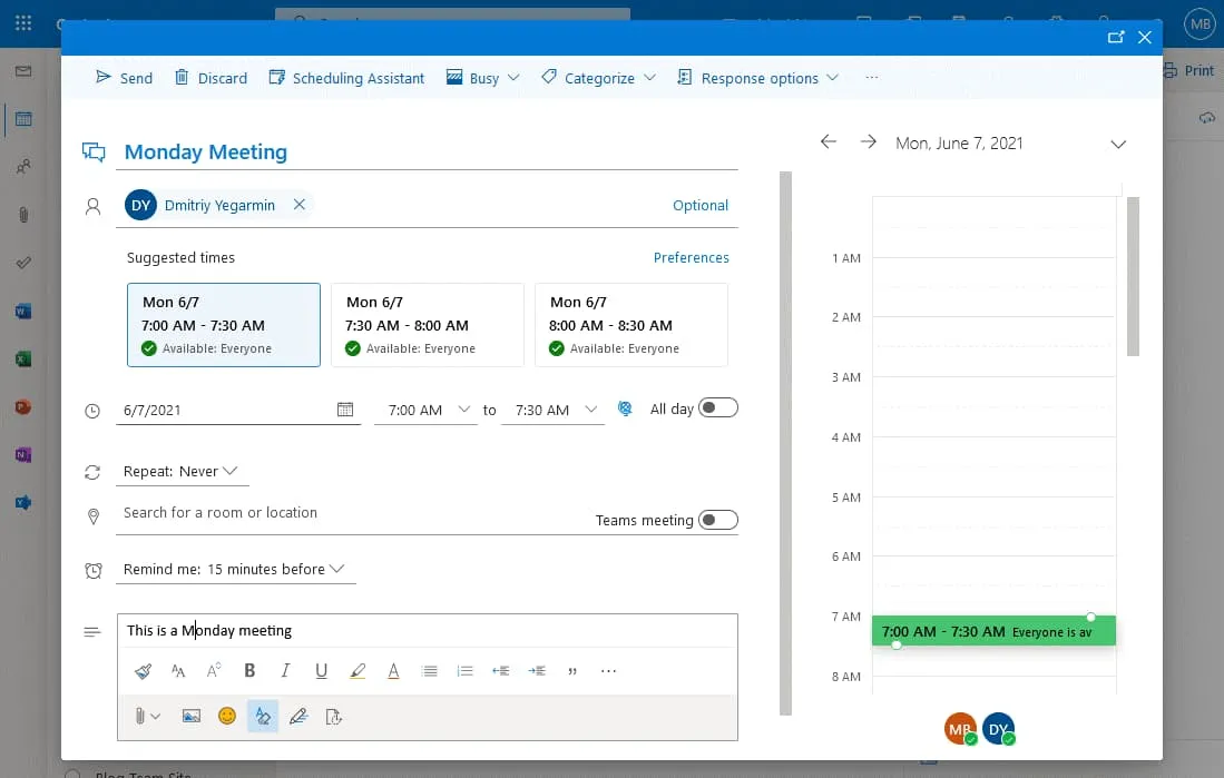 Advantages of the Outlook calendar