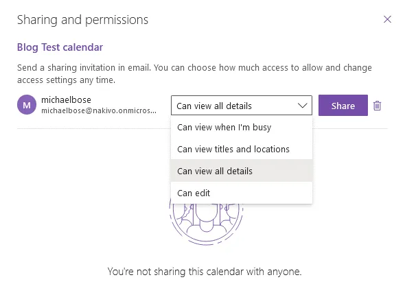 - You can select the Can view all details option if you want users to view all details without being able to edit the calendar.