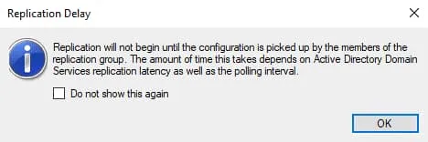 A notification message about the replication delay is displayed. Read the message and hit OK.