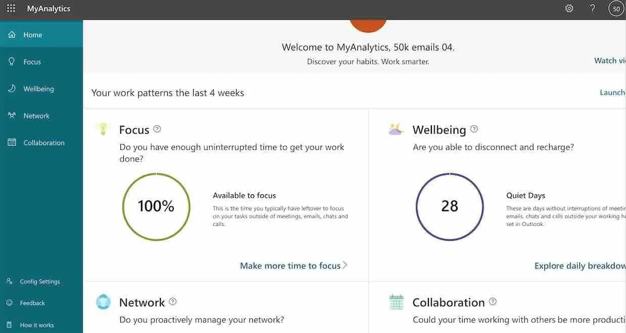 MyAnalytics lets you discover and improve your work patterns. Based on emails, calls, meetings, and chats, AI analyses your focus to boost productivity and improve overall well-being. All the data is only available to you, as it is meant to find your personal working routine that suits your needs and habits.