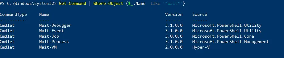 Get-Command | Where-Object {$_.Name -like '*wait*'}
