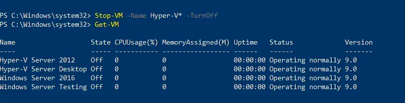 Another example is that you can turn off the VMs whose names start with Hyper-V: