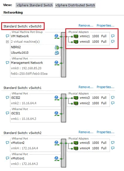 In vSphere, there are two types of virtual switches that can be provisioned, the vSphere Standard Switch (vSS) and Distributed Switch (vDS). The vDS requires Enterprise Plus licensing to be available and is configured at the vCenter level. For the purposes of this post, we use vSS since they span the full range of licensed offerings from VMware and they don’t require vCenter Server.
