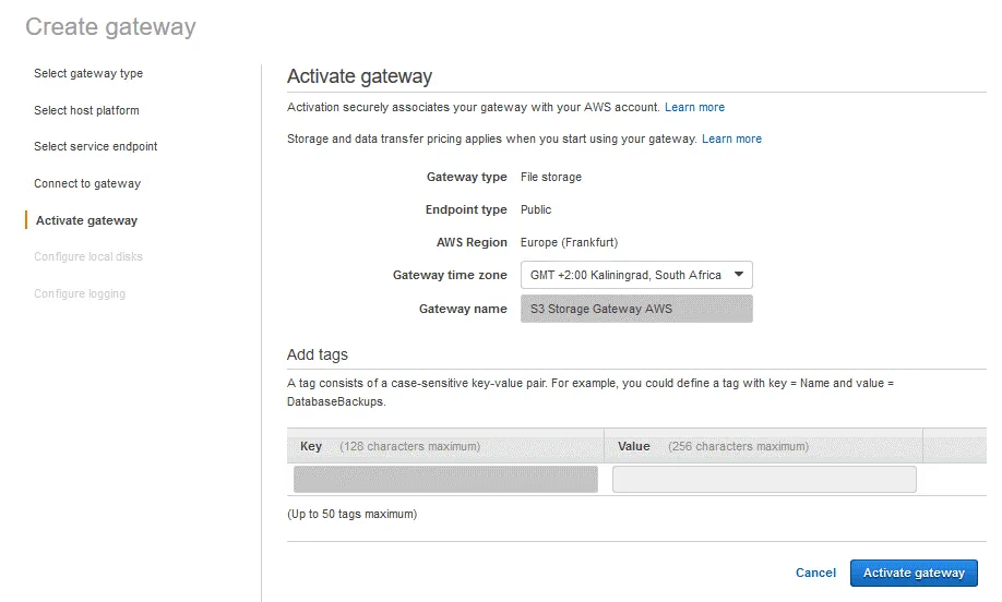 Activate gateway. Activation of the gateway securely associates your gateway with your AWS account.