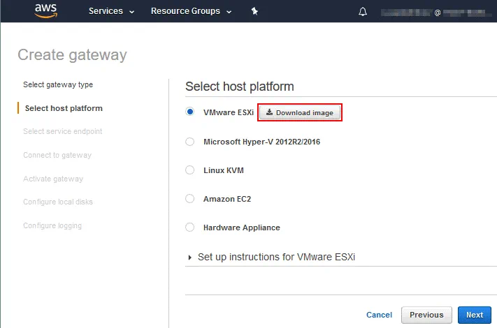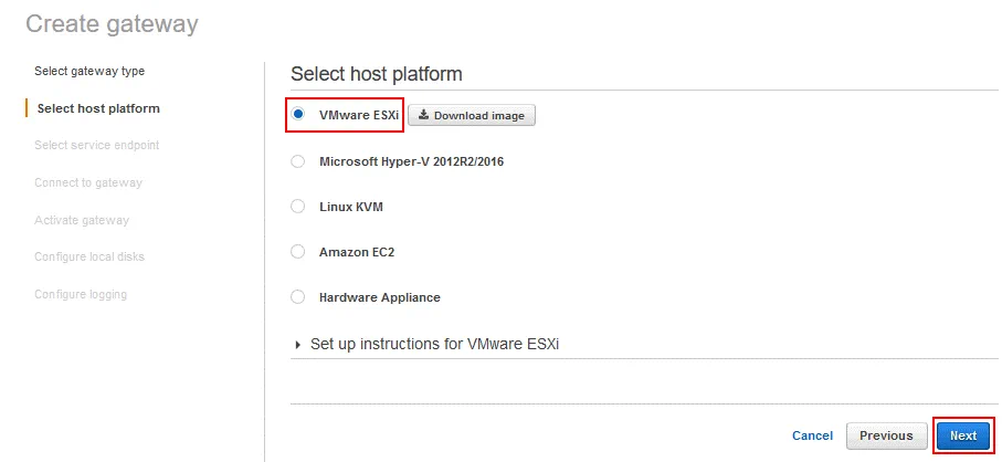 Select host platform. There are five supported host platforms to deploy. Select VMware ESXi and click the Download image button.