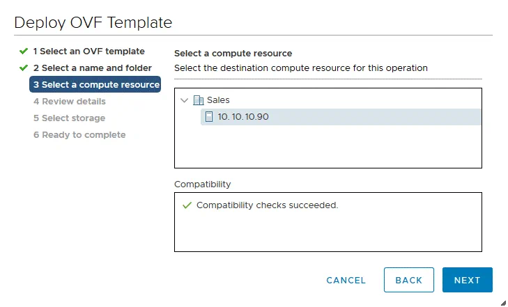 3. Select a compute resource. Select an ESXi host where the Storage Gateway VM will run. We select 10.10.10.90 in this example.