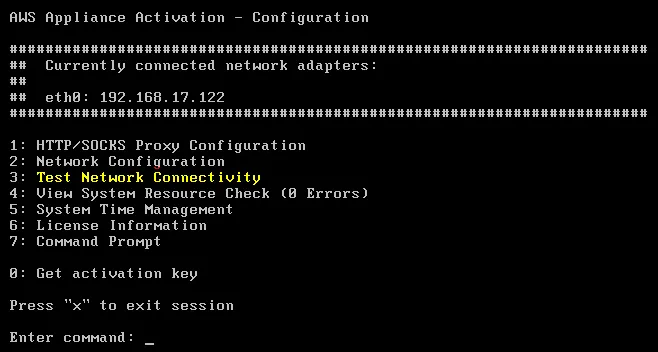 In our example, the IP address of the Storage Gateway virtual appliance is 192.168.17.122 and the netmask is 255.255.255.0.