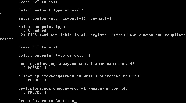 It is recommended to test the network connection of the Amazon Storage Gateway running as a VM locally with AWS cloud storage.