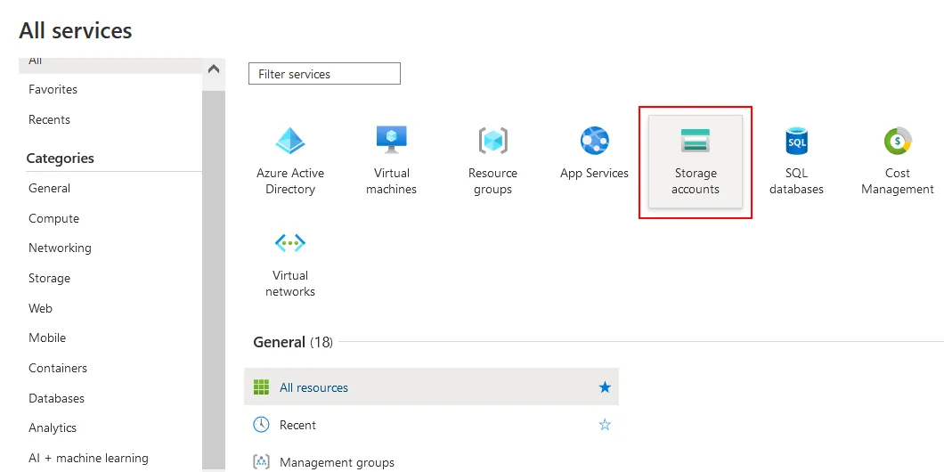 - Go back to the Azure homepage and go to All services > Storage accounts.