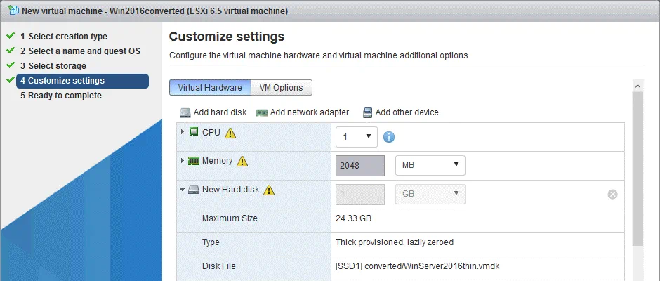 Let’s find out how to use a virtual disk converted from the VHD format for a VM running on ESXi.