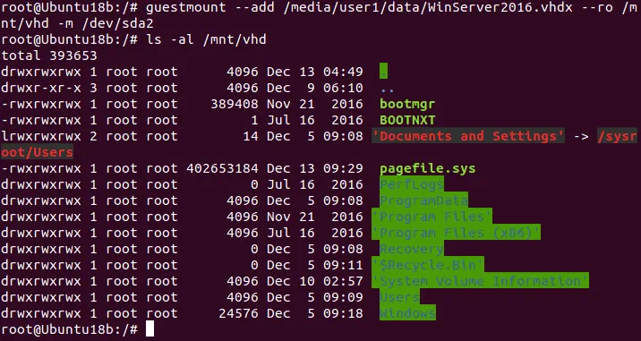guestmount --add /media/user1/data/WinServer2016.vhdx --ro /mnt/vhd -m /dev/sda2