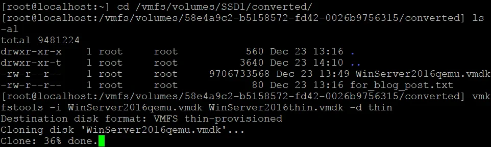 vmkfstools -i WinServer2016qemu.vmdk WinServer2016thin.vmdk -d thin