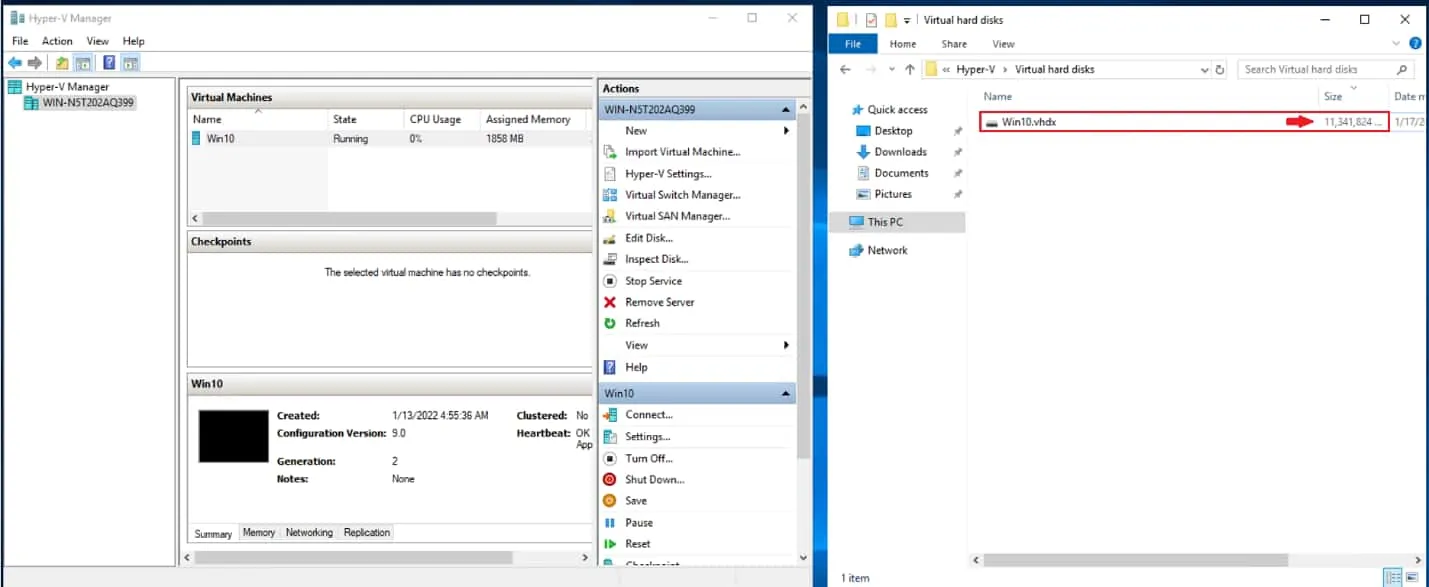 Hyper-V VM data is saved in the form of a .vhdx file. When a checkpoint is created, the .vhdx file becomes a read-only file. New modifications applied to the VM are saved in a differencing virtual hard disk. This differencing virtual hard disk is saved in the form of a .avhdx file in the same folder as that containing the .vhdx file.