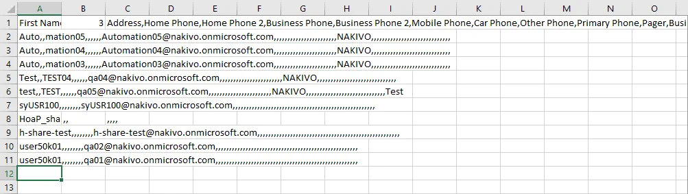 Microsoft Outlook is a popular and convenient email client that is a part of the Microsoft Office suite and is installed in Windows as a standalone application or along with other Office applications. Microsoft Office Outlook supports Microsoft 365 email accounts. In my example, I’ll use Microsoft Office Outlook 2016 to show you how to import contacts into Outlook. The logic for configuring other versions of Microsoft Office Outlook is similar. A CSV file, which is sometimes called a CSV contacts file, looks as follows if you open this file in Excel (see the screenshot below). This is the view of the Outlook CSV format. You can edit the CSV file, if needed, before you start to import contacts into Outlook.