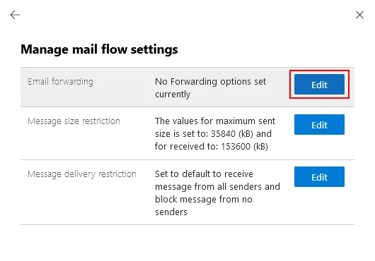 Locate the Email forwarding section in the Manage flow settings display pane and hit Edit.