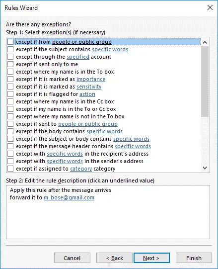 You can select exceptions to the rule (if necessary). I won’t select any exceptions in my example.