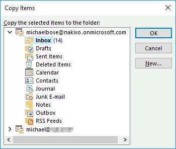 - Copy to Folder – a copy of each selected email message is sent to the destination folder of the destination account. Original email messages in the source location are preserved.