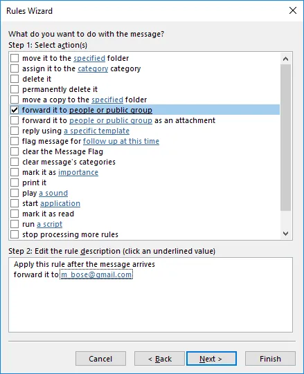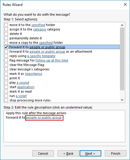 Step 1. Select the Forward it to people or public group checkbox.