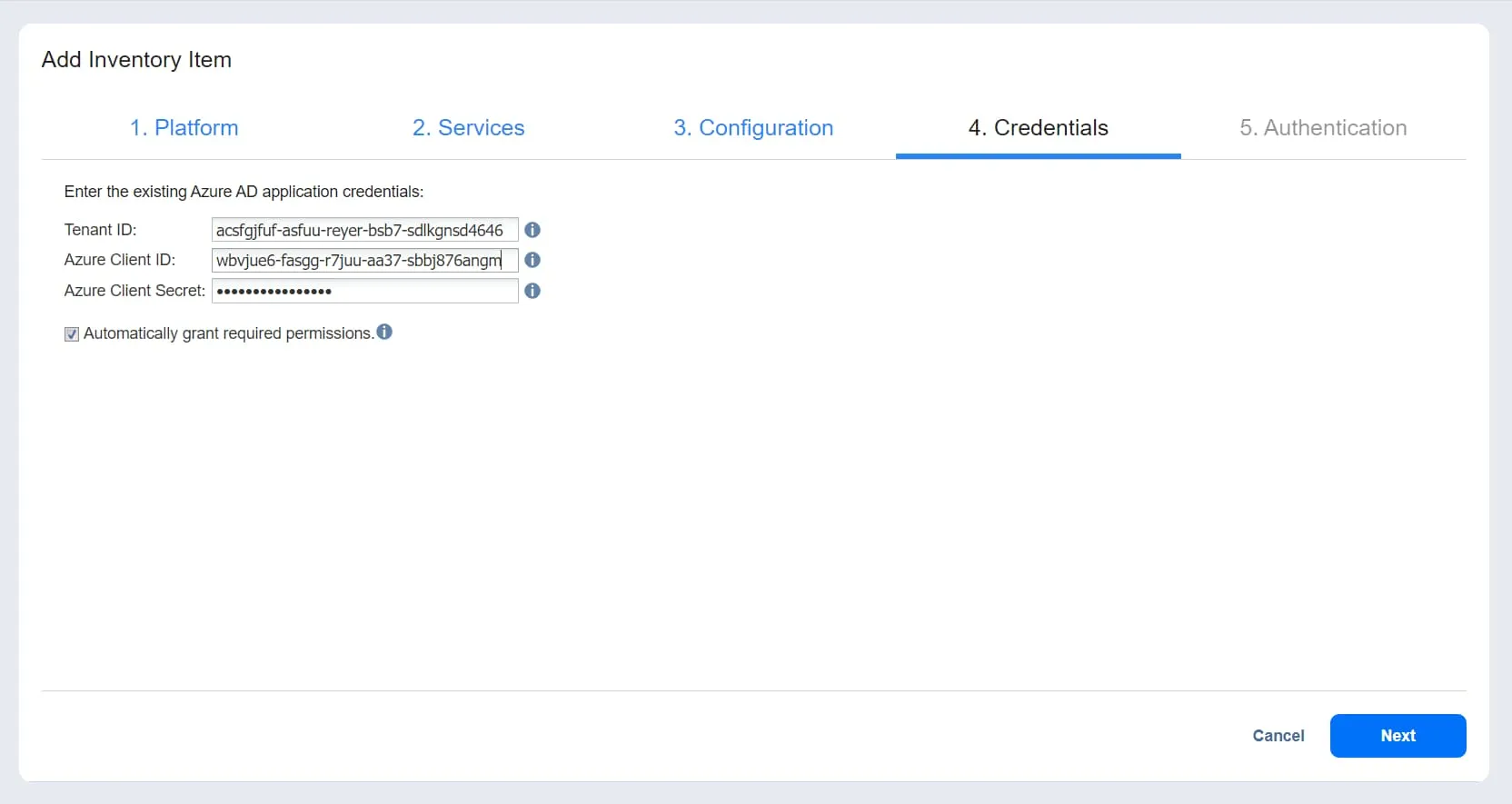 Note: Refer to Obtaining Microsoft 365 Credentials to learn where you can find credentials and how you can grant permissions in the Azure Portal.
