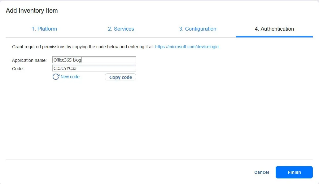 Before you start this process, check if your infrastructure meets the Microsoft 365 requirements. If it does, you can add your Microsoft 365 account to the inventory: