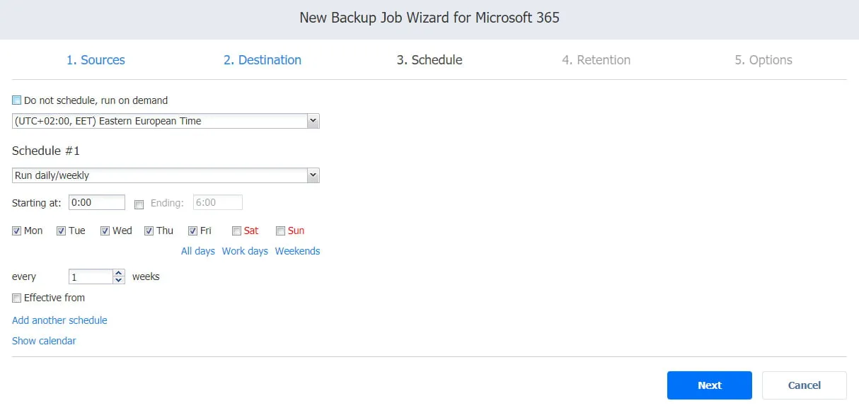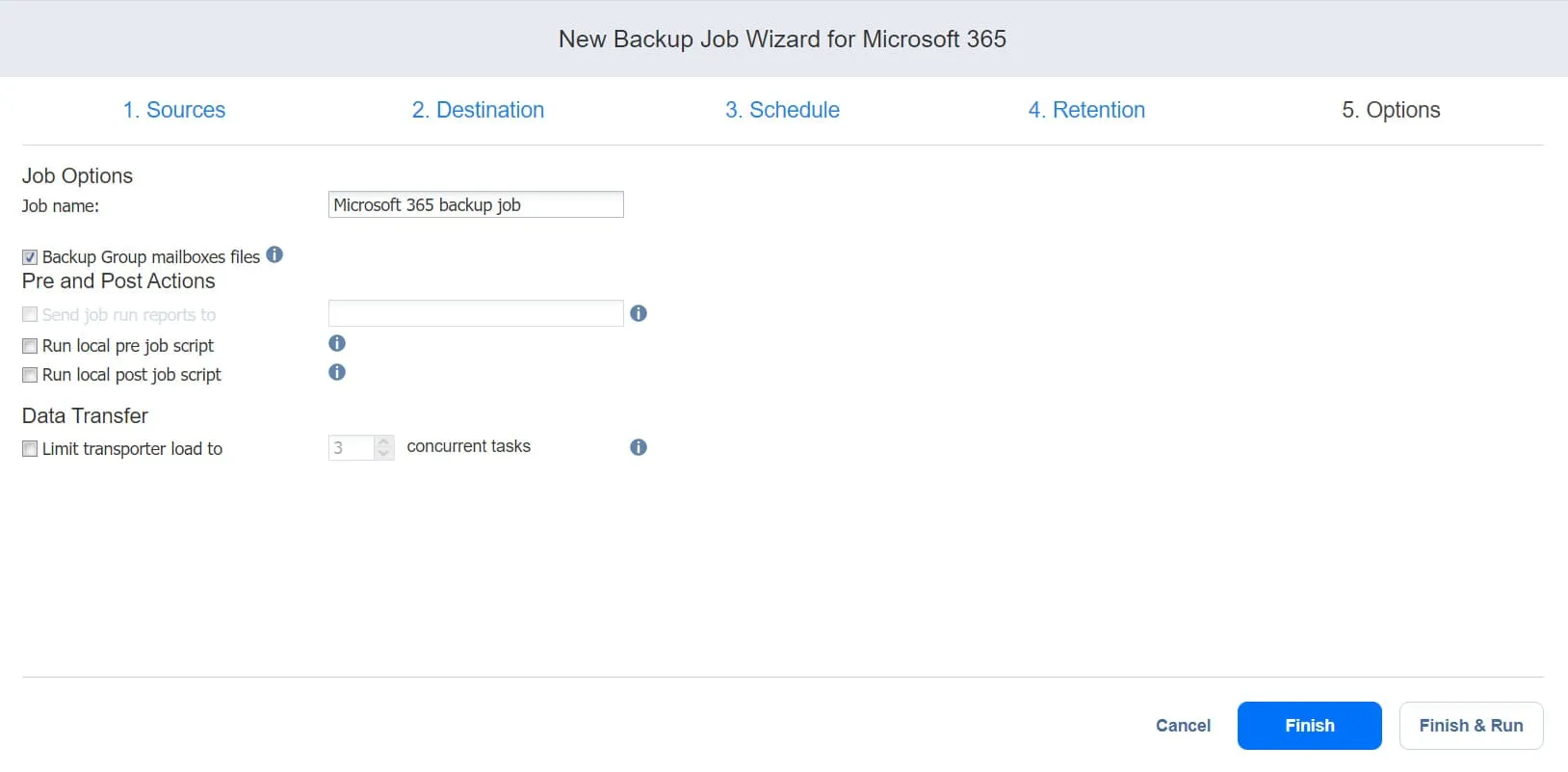 The backup job wizard for Microsoft 365 consists of the five steps detailed below: