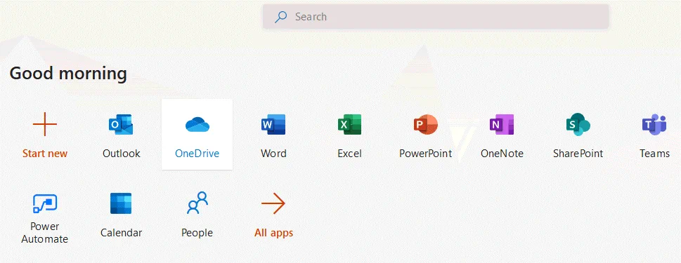 - Click OneDrive in the list of Microsoft Office 365 online apps.