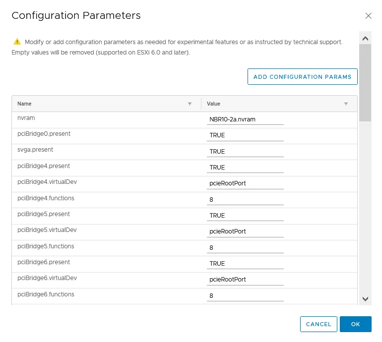 - Edit or add this line to the virtual machine configuration if the parameter is not present: