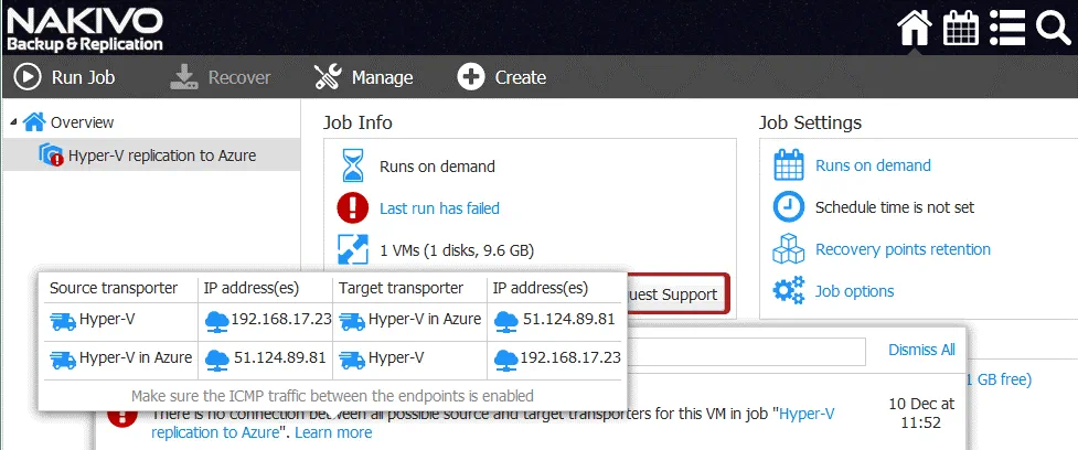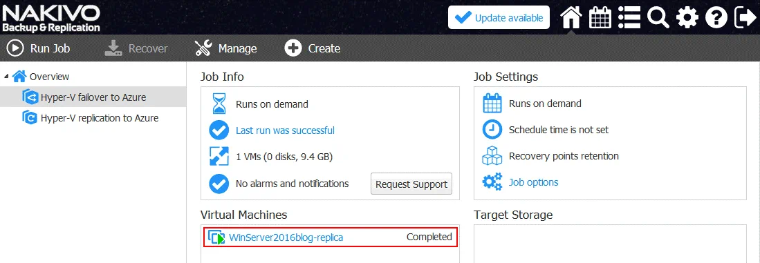 Now you should understand how to configure the Azure environment, Hyper-V environment, firewall, and NAKIVO Backup & Replication to make a disaster recovery process fast and easy.