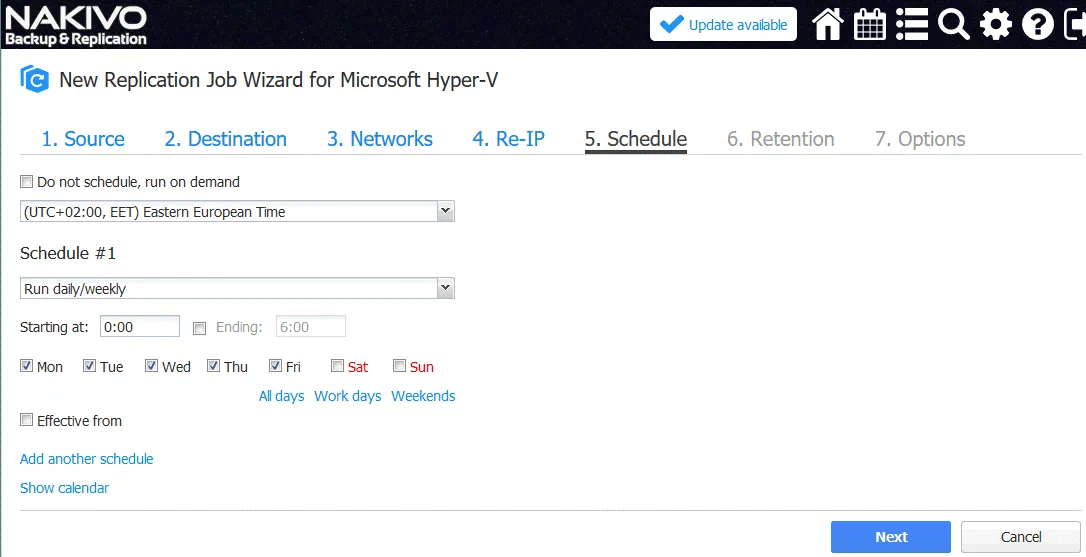 The New Replication Job Wizard for Microsoft Hyper-V is opened.