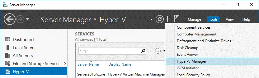 - Install the Hyper-V role on that Windows Server VM running in Azure.