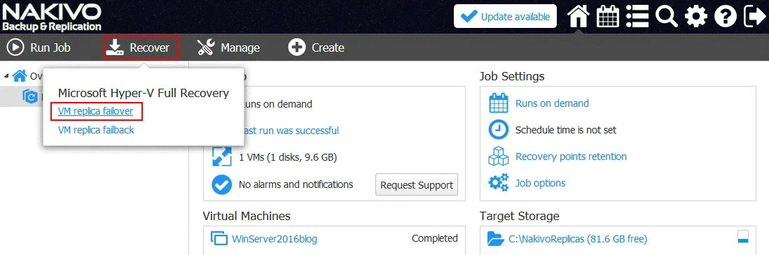 Now, when you have a VM replica, you are ready for VM failover with NAKIVO Backup & Replication.