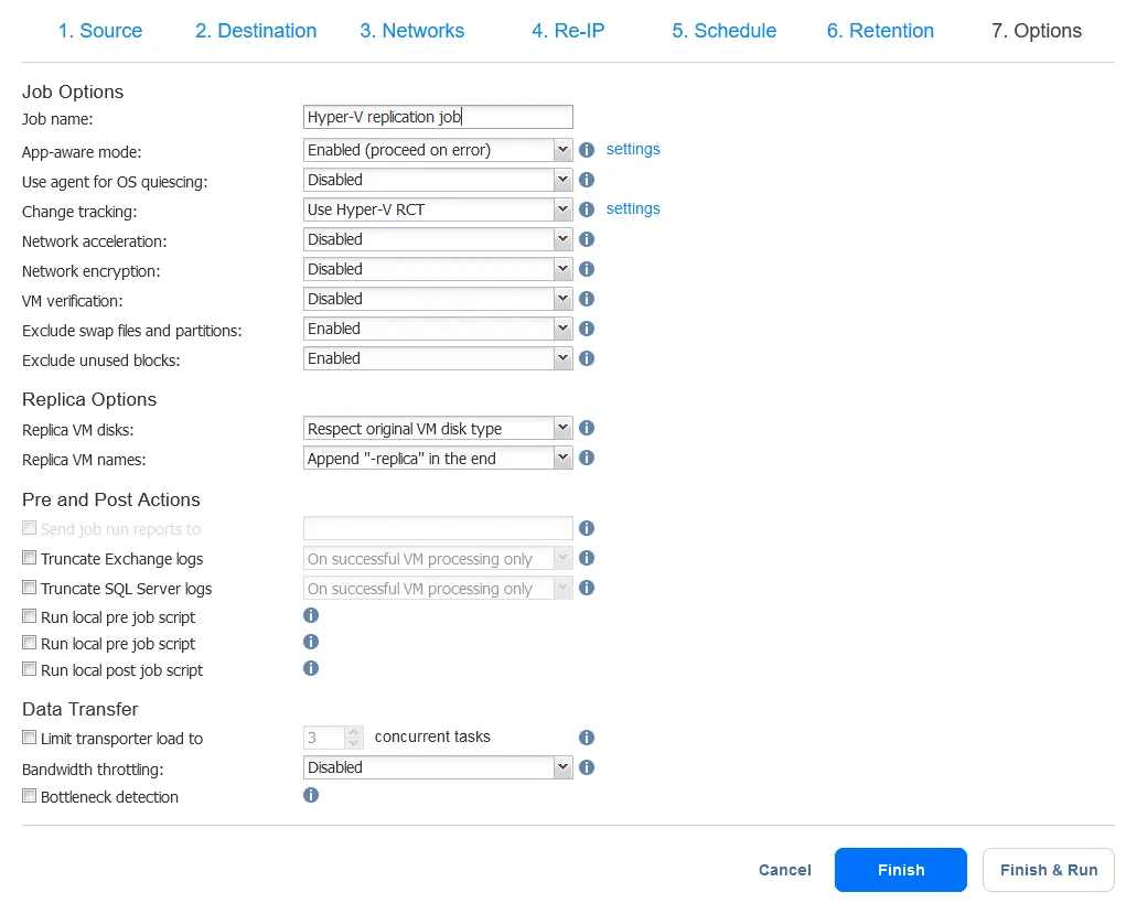 - Options. Finally, you are given many interesting options showcasing the power and versatility of NAKIVO Backup & Replication. On the Options screen, you can configure the following settings for your Hyper-V replication job: