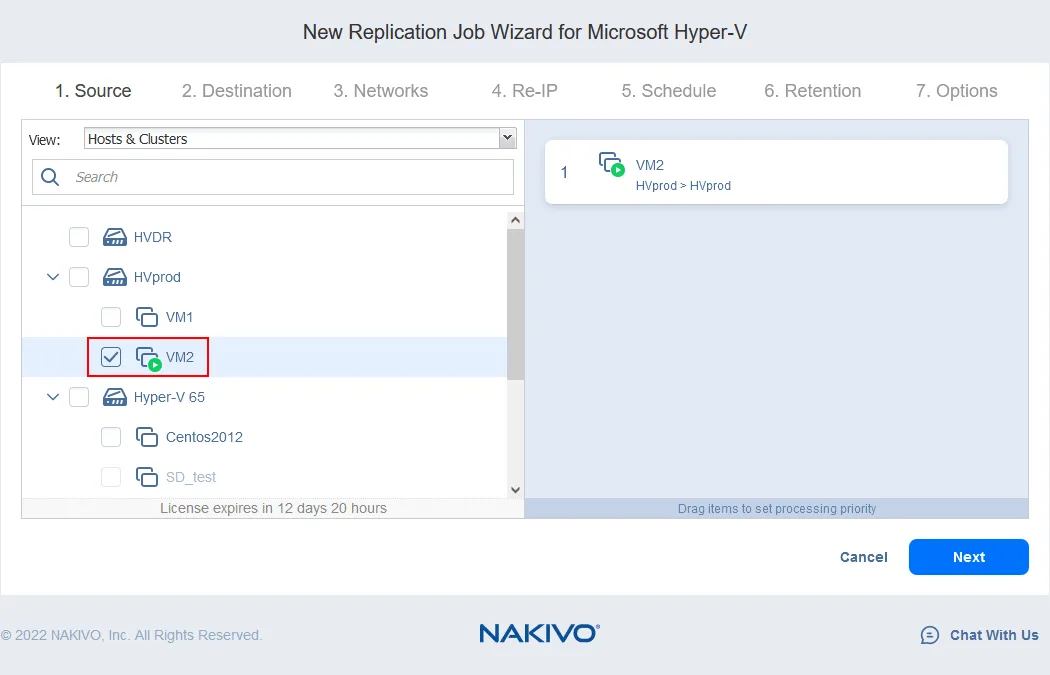 The New Replication Job Wizard for Microsoft Hyper-V opens.