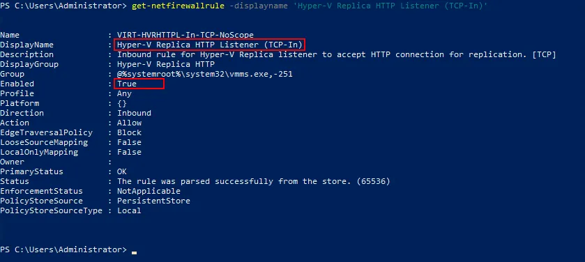Get-Netfirewallrule -DisplayName 'Hyper-V Replica HTTP Listener (TCP-In)'