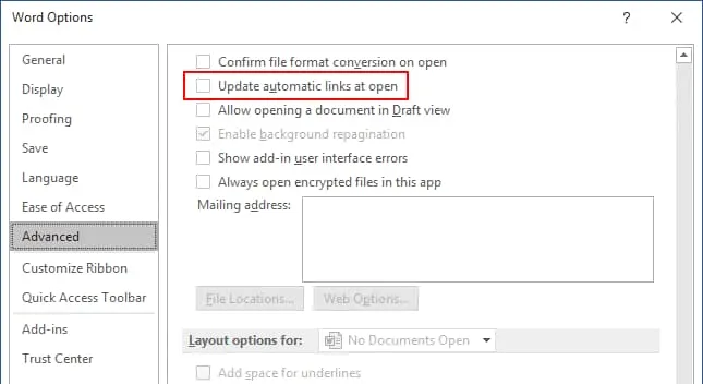 Automatic links are used to link objects (tables, diagrams, images, etc.) in other source documents with the current document. Content changes in a source document are reflected in your current document where the active link is inserted. Automatic links can be a reason why Microsoft Word is slow.