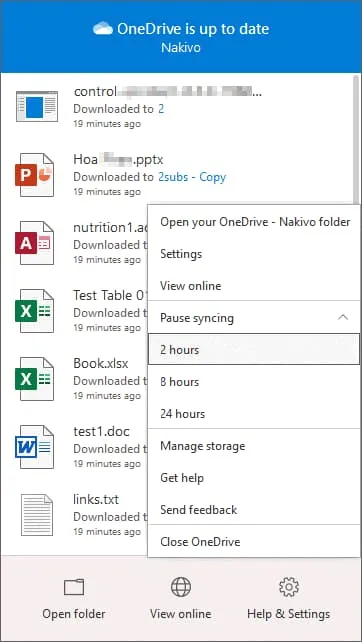 - In the context menu, click Pause syncing and select the time (2, 8, or 24 hours).