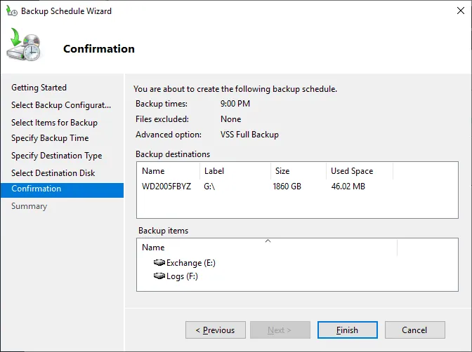 Now you can create a backup of Exchange Server and other Windows Server components.