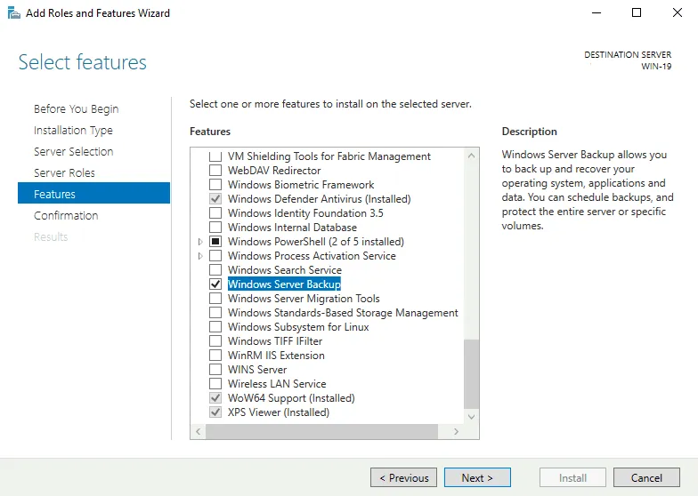 You must enable the Windows Server Backup feature to use this native backup tool.