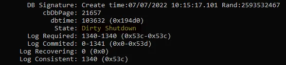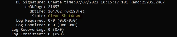 Below in the output, you can also see information on which logs are required to restore Exchange database state to Clean Shutdown. This information is stored in .edb database headers.