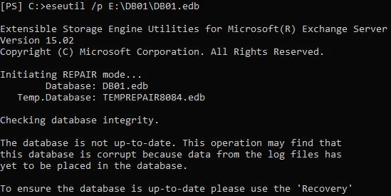 We need to use eseutil for Exchange database recovery and fixing database issues.
