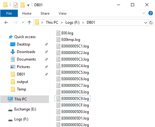 where EXX is the log generation prefix, such as E00, E01, E02, etc.