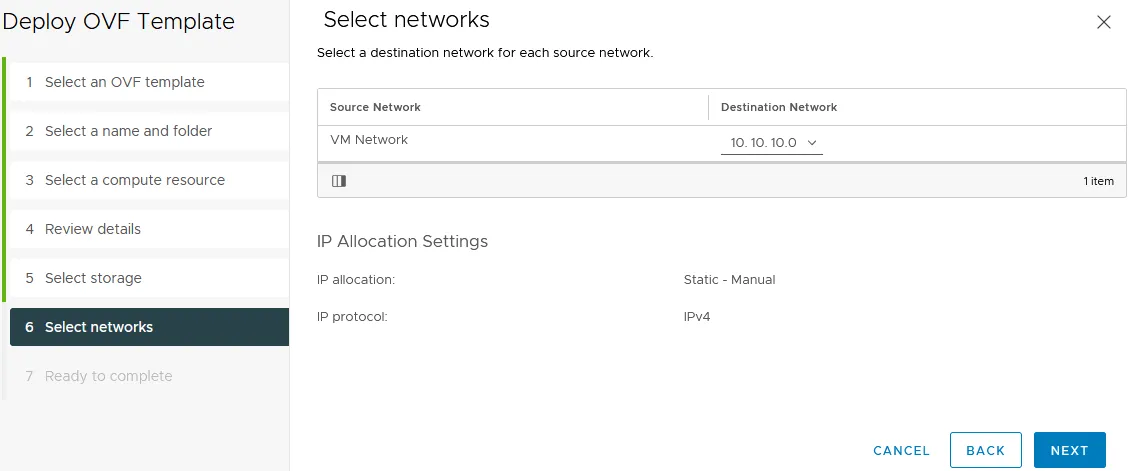 - Select networks. Select VM networks to which you want to connect a virtual machine.