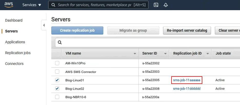 Now you should be on a Servers page. Click a Replication job ID for a VM that is replicating.