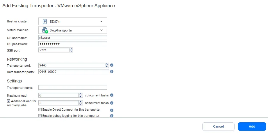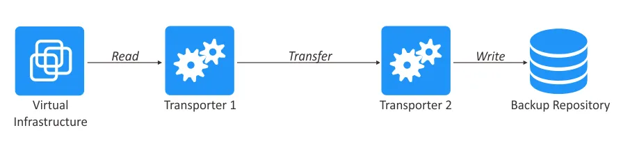 Deploying multiple Transporters can also be useful for load balancing to distribute the load among available Transporters when performing data replication, backup, and recovery jobs. Using multiple Transporters allows you to process more backup/replication/recovery workloads simultaneously.