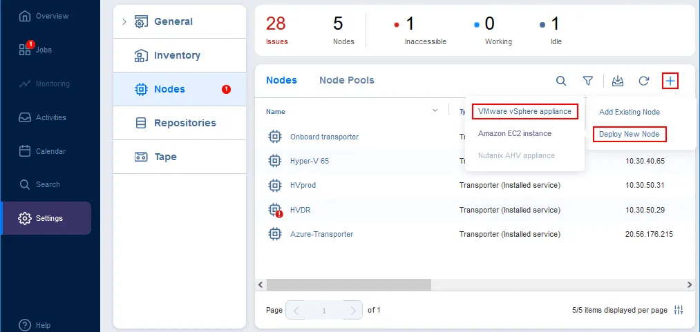 - Click + > Deploy New Node > VMware vSphere Appliance.