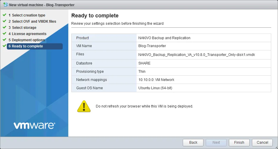 You can read the step-by-step instructions about deploying the NAKIVO solution from the VMware Template in vSphere Client in the help center.