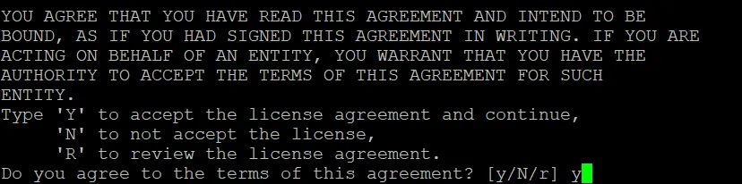 Press Enter to scroll down. Make sure to read to the end of the agreement to avoid restarting the installer once again.