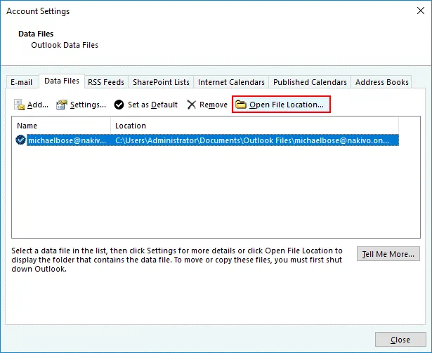 As I’m using Windows, my PST file is displayed in the new window that opens in Windows Explorer. Copy the PST file used to store email data for your Microsoft 365 email, and paste this file to a safe location. This copy of the PST file can be considered as a Microsoft 365 email backup.