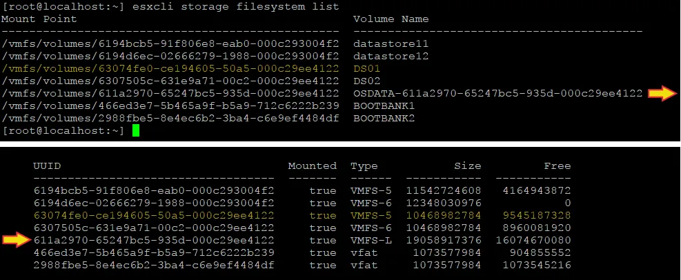 - Check free disk space on the VMFS 6 datastore and used disk space on the VMFS 5 datastore.In the command line, use the