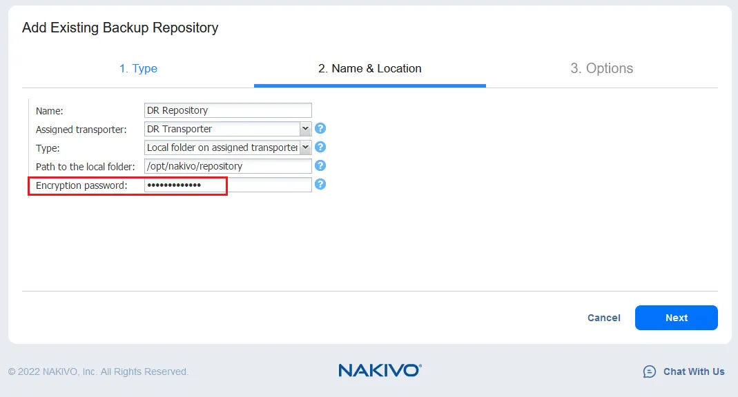If we have encrypted the backup data repository, the backup data is useless without the encryption key. If someone does get their hands on unauthorized data, they won’t be able to use it. In NAKIVO Backup & Replication, we have the ability to encrypt a repository containing VM backups. It means that all data that is backed up to the encrypted repository will be unreadable without the encryption key.